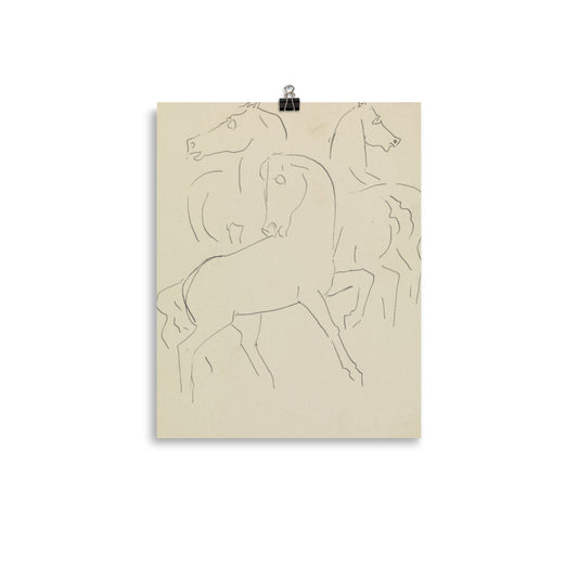 Sketch Journal with Three Studies of Horses Art Print