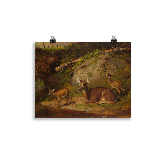 Doe and Two Fawns Art Print